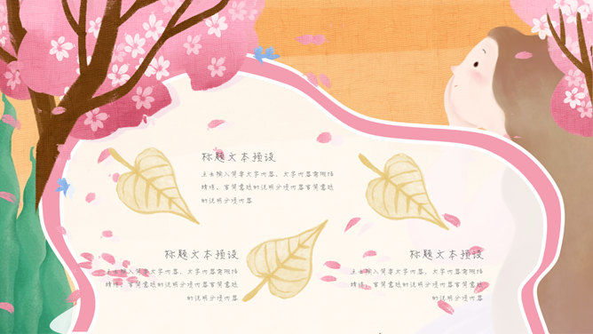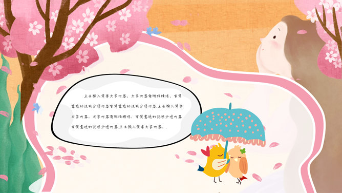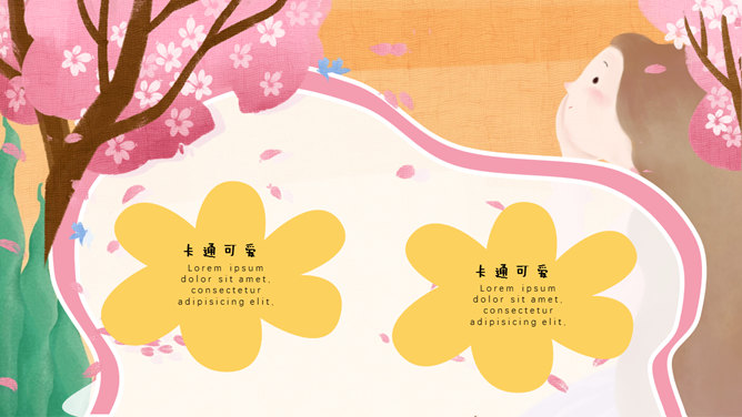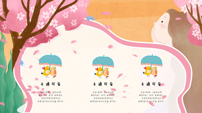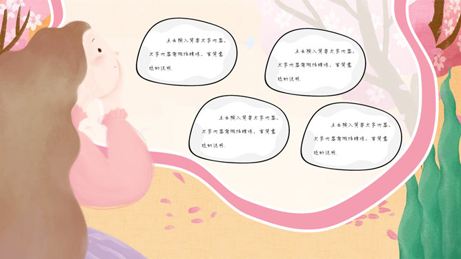 艺术插画风可爱卡通PPT模板。一套卡通风格幻灯片模板,可爱插画艺术女孩背景,好看的动态播放效果。