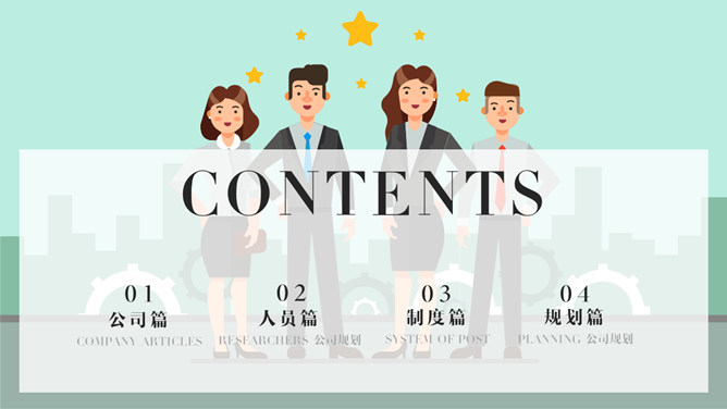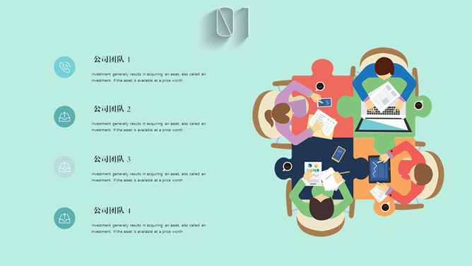 创意扁平化团队建设PPT模板。公司团队建设培训课件模板,扁平设计风格。使用字体: