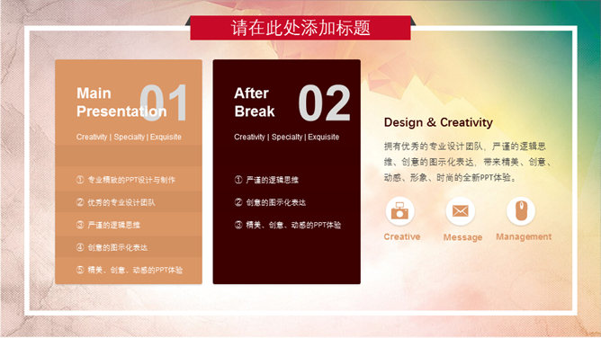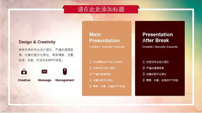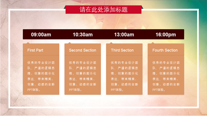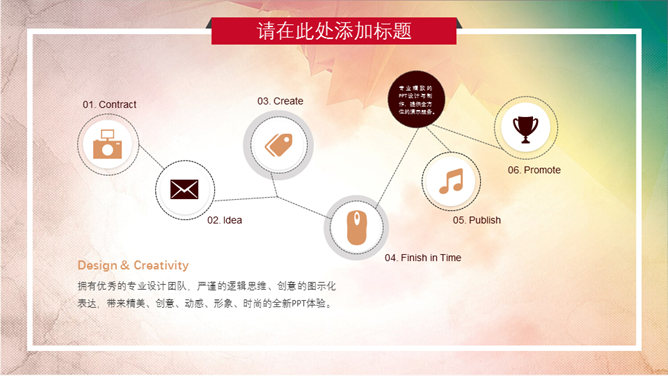 炫彩水彩多功能通用PPT模板。一套多功能通用幻灯片模板,炫彩水彩背景,绚丽彩色,动态播放效果。