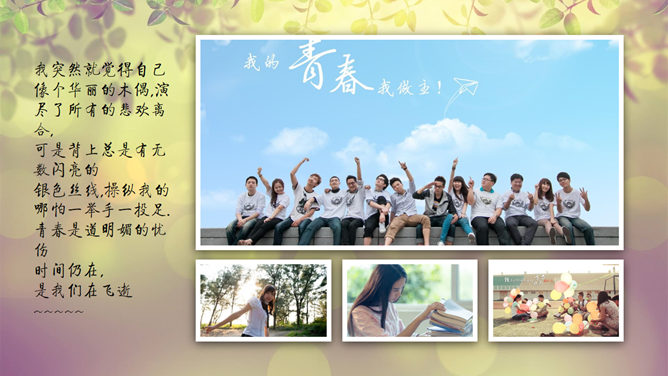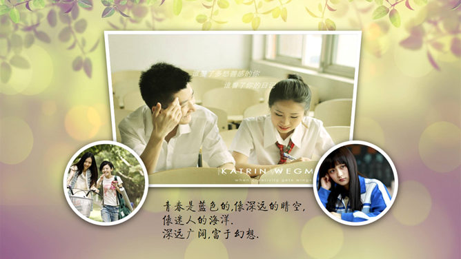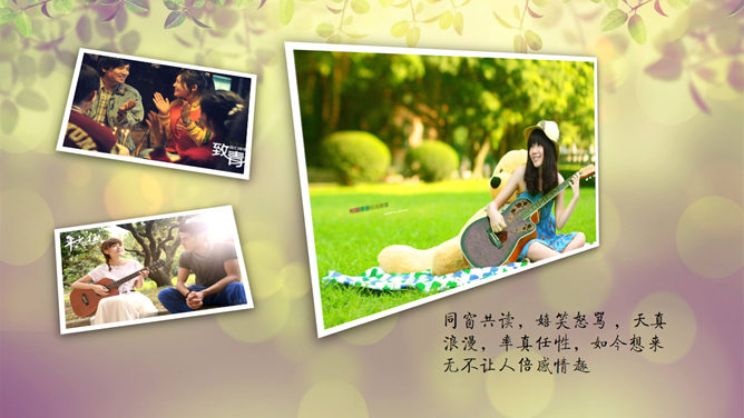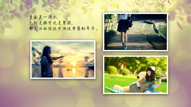 小清新动态电子相册PPT模板。一套小清新动态电子照片相册幻灯片模板。建议安装字体: