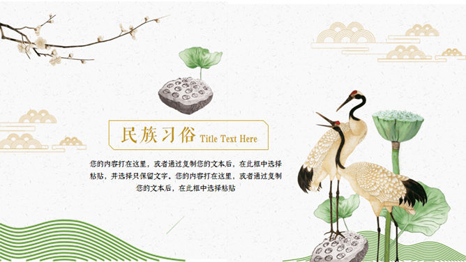 仙鹤荷花中国风重阳节PPT模板