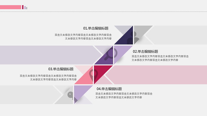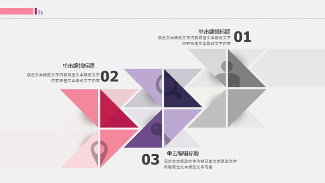 拼接三角风工作总结PPT模板。一套工作汇报总结幻灯片模板,创意拼接三角形设计,可用于多种场景场合。
