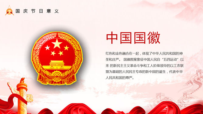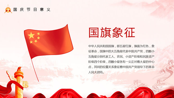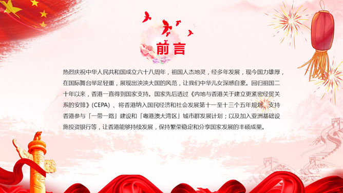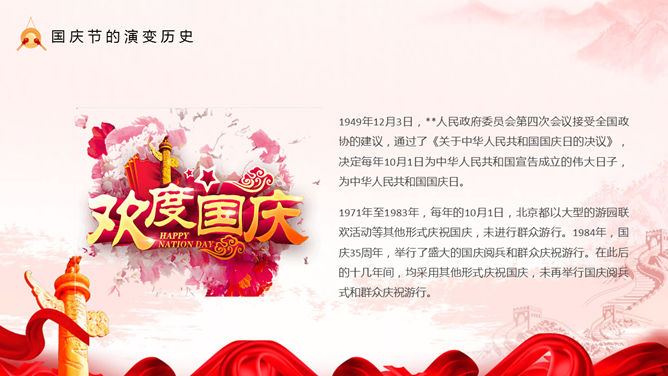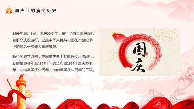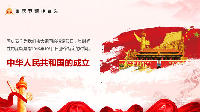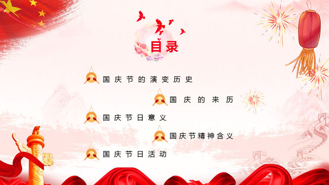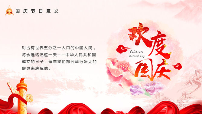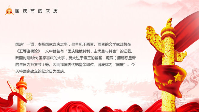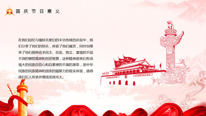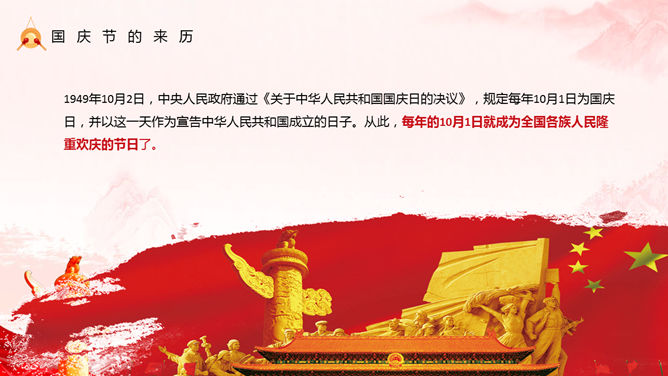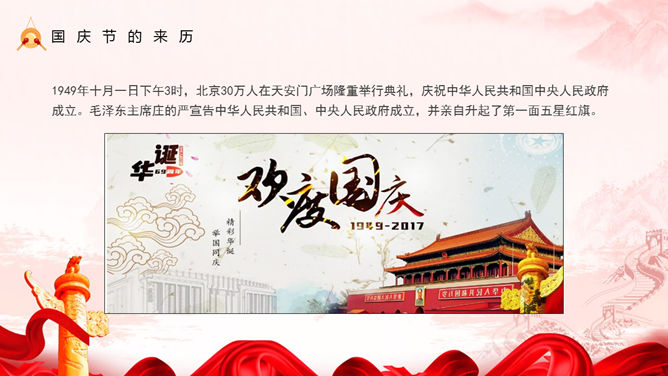 喜庆红色欢度国庆节PPT模板。一套精美国庆节主题幻灯片模板,大气喜庆红色主色调,动态播放效果。