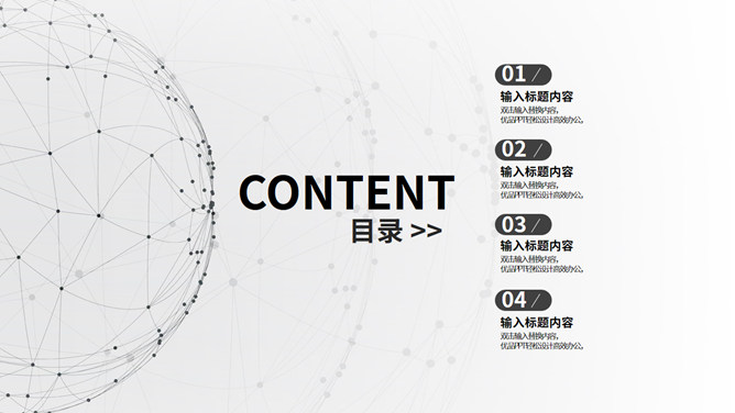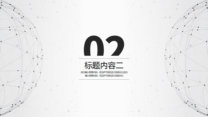 简约点线粒子通用PPT模板。一套简约通用幻灯片模板,大气灰黑配色,科技风点线粒子背景,通用性强。