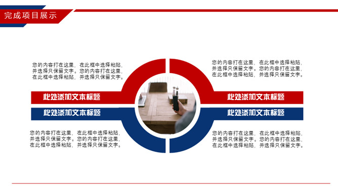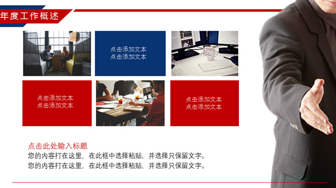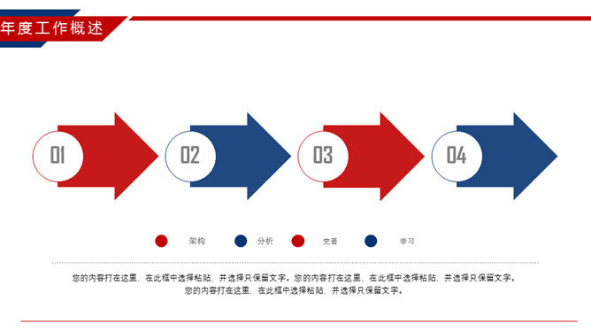 时尚红蓝年终工作总结PPT模板