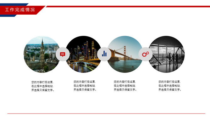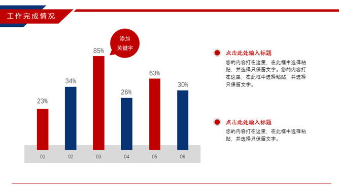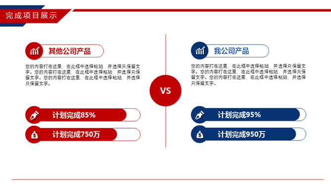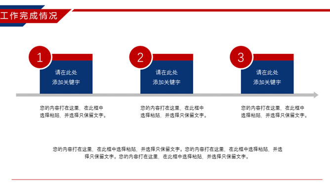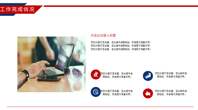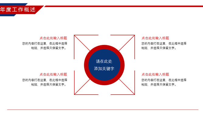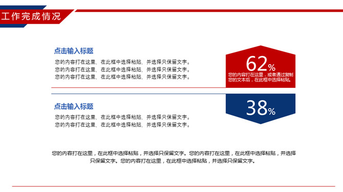 时尚红蓝年终工作总结PPT模板。一套年终工作汇报总结幻灯片模板,时尚红蓝配色,动态播放效果。