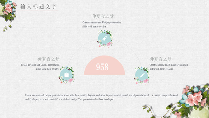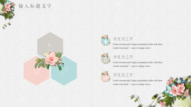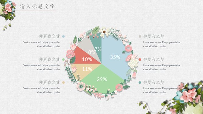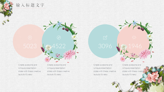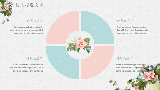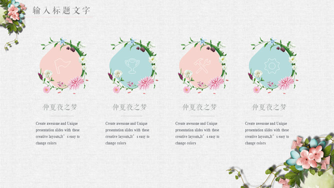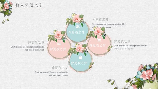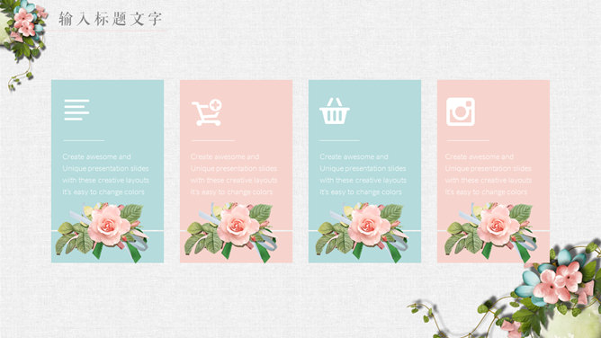 唯美花朵文艺清新PPT模板。一套精美文艺幻灯片模板,淡雅小清新配色,唯美花朵花卉装饰,动态播放。