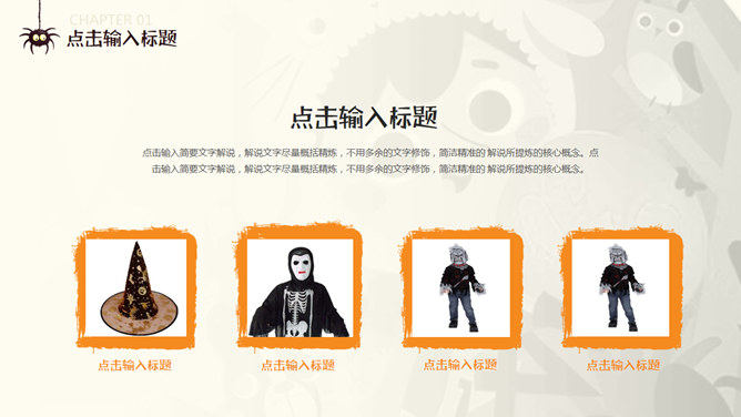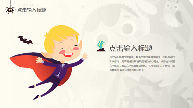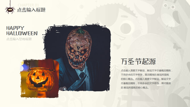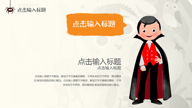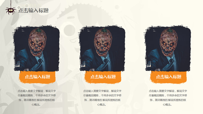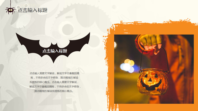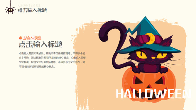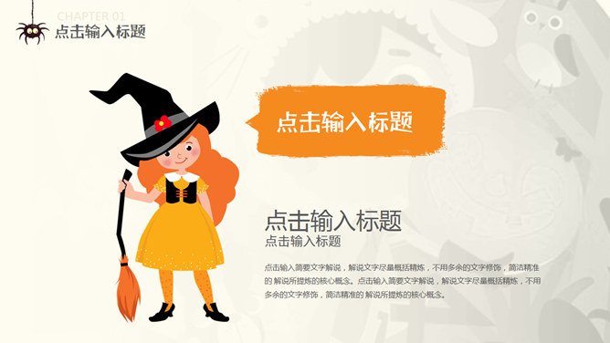 可爱卡通风万圣节PPT模板。一套万圣节主题幻灯片模板,可爱卡通设计风格。建议安装字体: