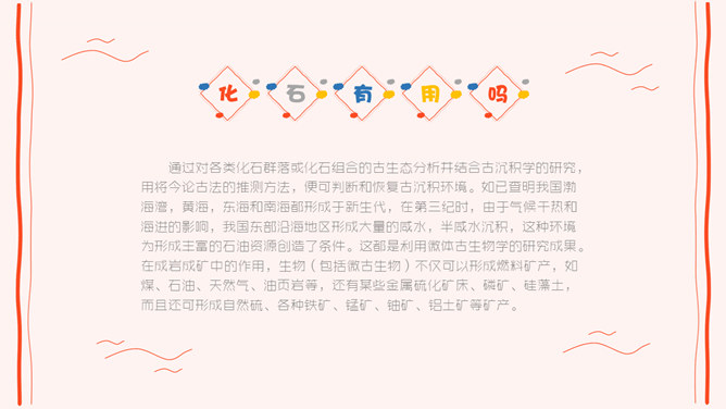 古代动物和植物的统称。古生物的遗体有少数变成化石保存下来,如,三叶虫、恐龙、猛犸。化石是古代生物的遗体、遗物或遗迹埋藏在地下变成的跟石头一样的东西。厚厚的地层好比一本硕大无比的书,夹藏在不同地层里的化石就像一种特殊的文字,记录着古生物生存活动的历史和地层的年龄,它是人类开启地球宫门的一把钥匙。因此,研究化石可以了解生物的演化并能帮助人们确定地层的年代。通过对各类化石群落或化石组合的古生态分析并结合古沉积学的研究,用将今论古法的推测方法,便可判断和恢复古沉积环境。如已查明我国渤海湾,黄海,东海和南海都形成于新生代,在第三纪时,由于气候干热和海进的影响,我国东部沿海地区形成大量的咸水,半咸水沉积,这种环境为形成丰富的石油资源创造了条件。这都是利用微体古生物学的研究成果。 在成岩成矿中的作用,生物(包括微古生物)不仅可以形成燃料矿产,如煤、石油、天然气、油页岩等,还有某些金属硫化矿床、磷矿、硅藻土,而且还可形成自然硫、各种铁矿、锰矿、铀矿、铝土矿等矿产。