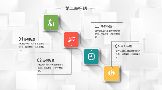 多彩工作总结计划PPT模板。一套精美动态幻灯片模板,微立体视觉效果,多彩配色,适合工作总结计划使用。