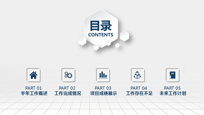 微立体大气年终总结PPT模板。一套实用年终工作汇报总结报告幻灯片模板,大气蓝色配色,动态微立体效果。