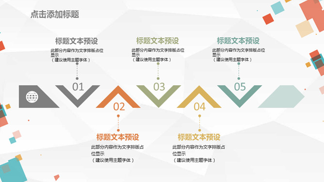 缤纷彩色方块通用PPT模板。一套多用途通用幻灯片模板,彩色配色,缤纷多彩方块装饰,动态播放效果。