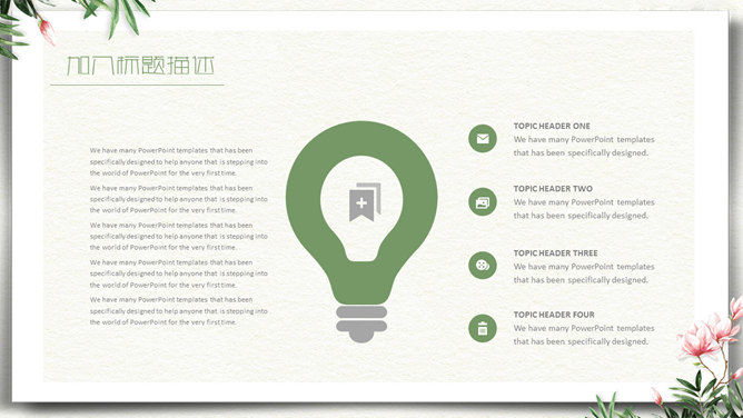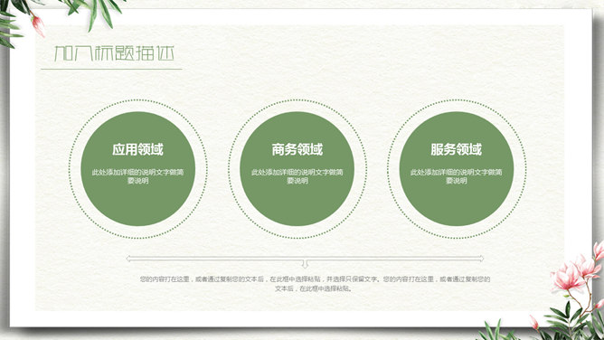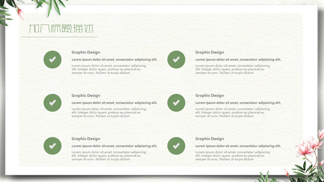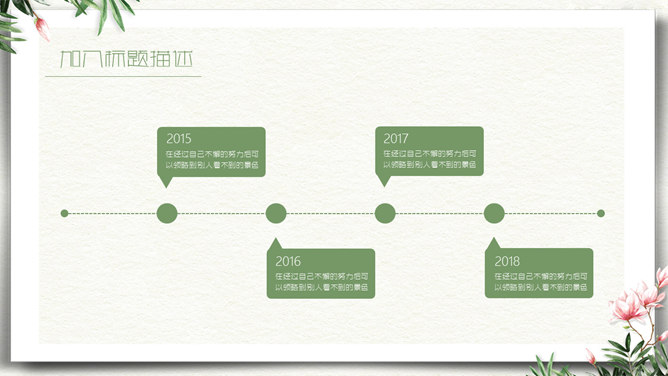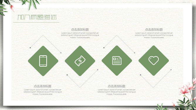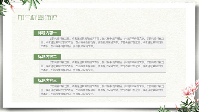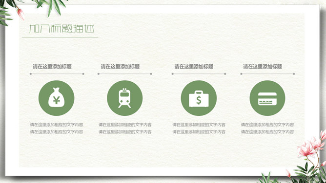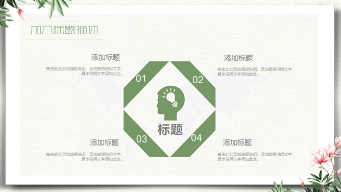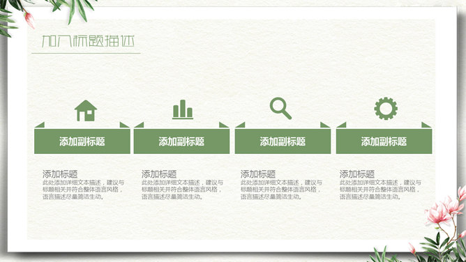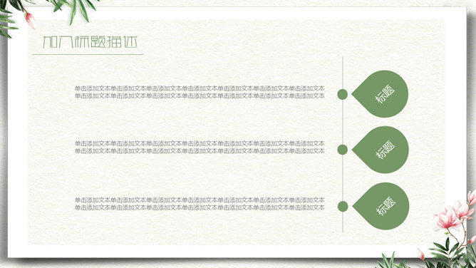 清新绿色唯美花鸟PPT模板。一套淡雅小清新幻灯片模板,清新绿色配色,唯美花鸟素材装饰,动态播放效果。