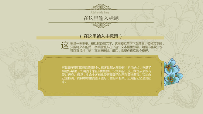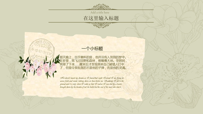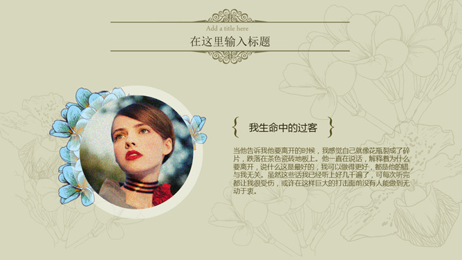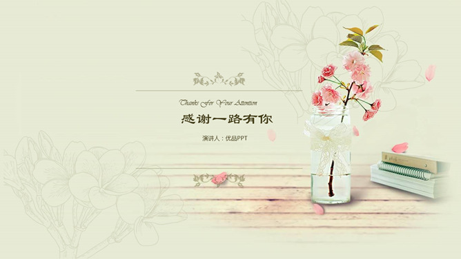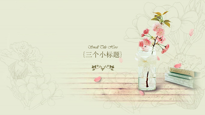 唯美淡雅复古小清新PPT模板。一套淡雅小清新幻灯片模板,唯美花瓶插花背景装饰,欧式复古设计风格。