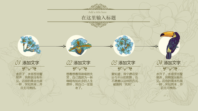 精美文艺复古花鸟PPT模板