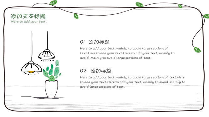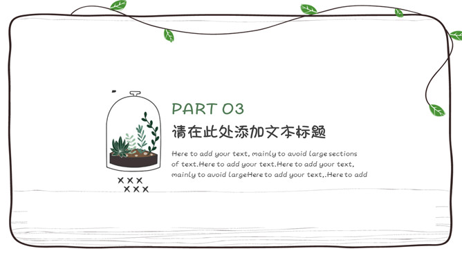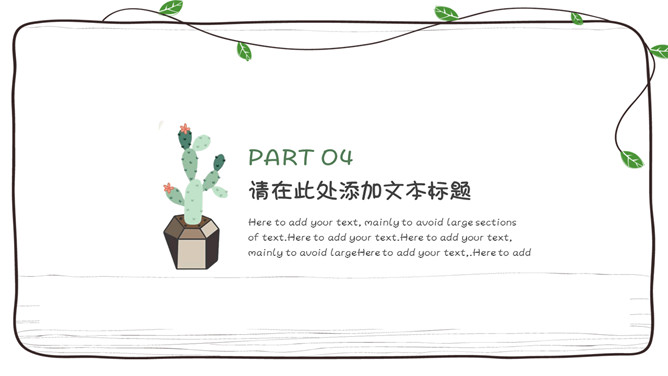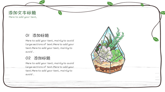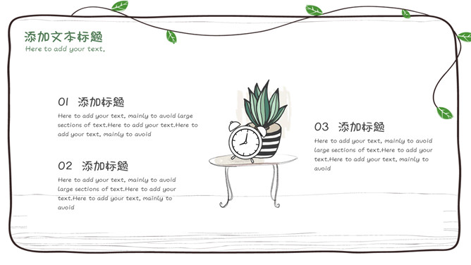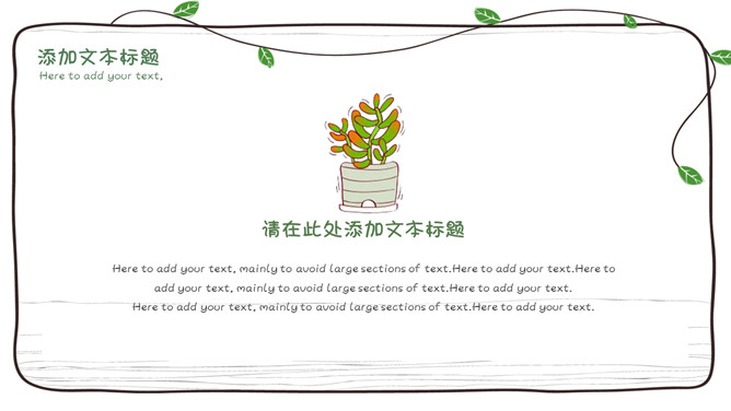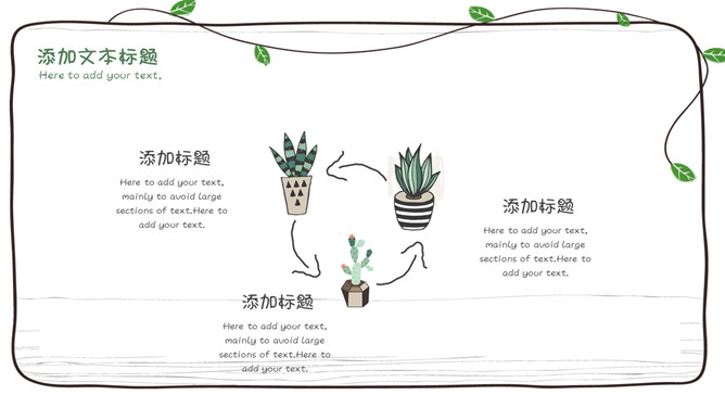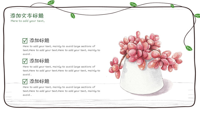 简约可爱藤蔓多肉植物PPT模板。一套简洁清新幻灯片模板,可爱藤蔓边框背景,卡通多肉植物素材装饰。