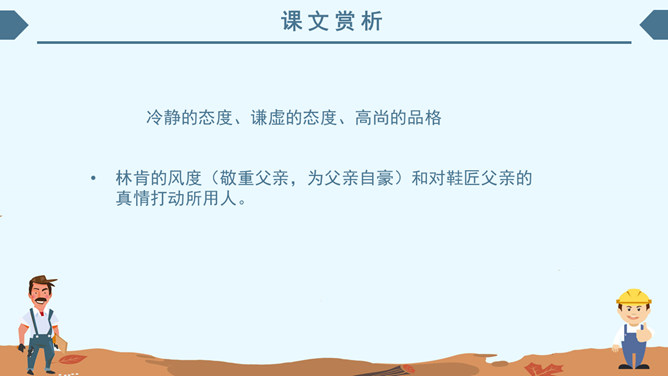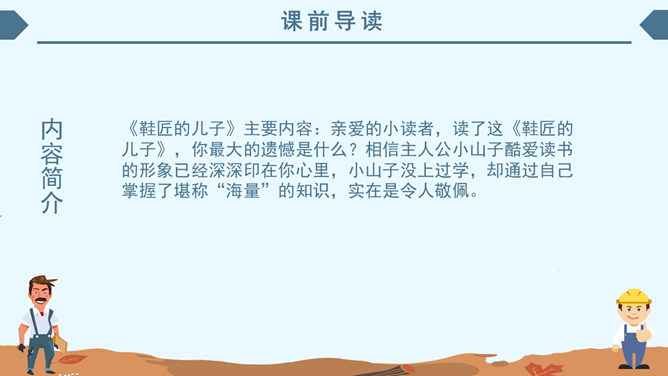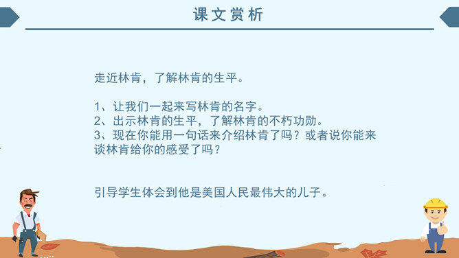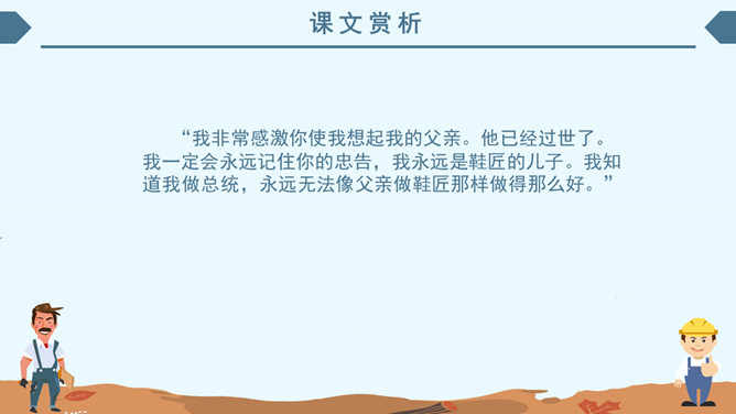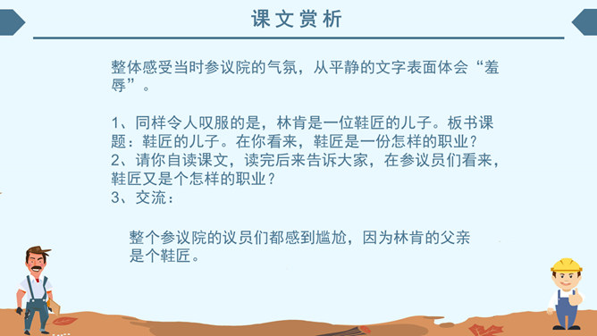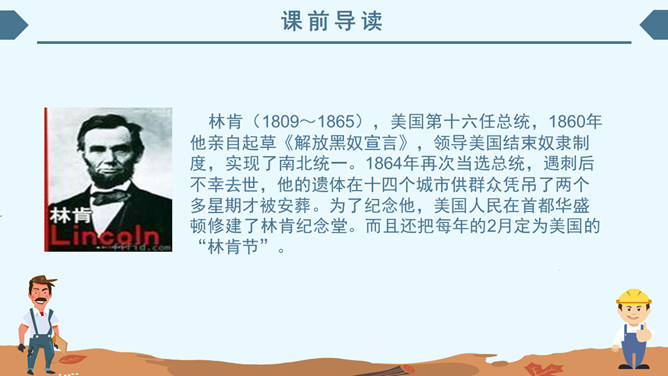 内容简介:《鞋匠的儿子》主要内容:亲爱的小读者,读了这《鞋匠的儿子》,你最大的遗憾是什么?相信主人公小山子酷爱读书的形象已经深深印在你心里,小山子没上过学,却通过自己掌握了堪称“海量”的知识,实在是令人敬佩。学习目标:1、自主学习本课生字,并正确、工整进行书写。2、联系上下文,理解重点词语的意思。借助旁批,了解课文内容。领悟林肯宽容大度的气魄和充满智慧的人格魅力。3、正确、流利,有感情地朗读课文。林肯(1809~1865),美国第十六任总统,1860年他亲自起草《解放黑奴宣言》,领导美国结束奴隶制度,实现了南北统一。1864年再次当选总统,遇刺后不幸去世,他的遗体在十四个城市供群众凭吊了两个多星期才被安葬。为了纪念他,美国人民在首都华盛顿修建了林肯纪念堂。而且还把每年的2月定为美国的“林肯节”。