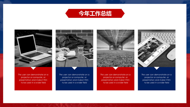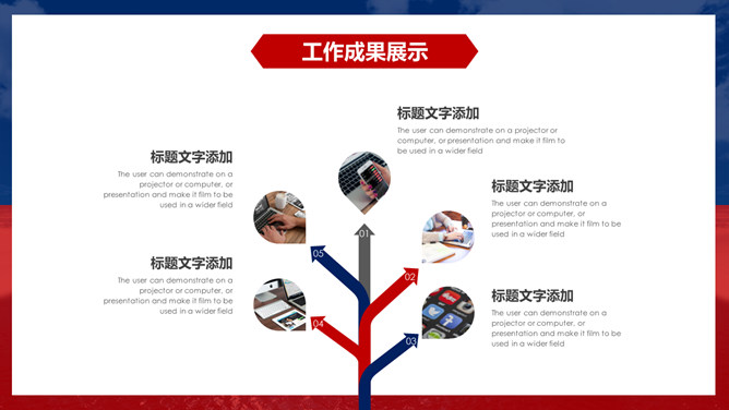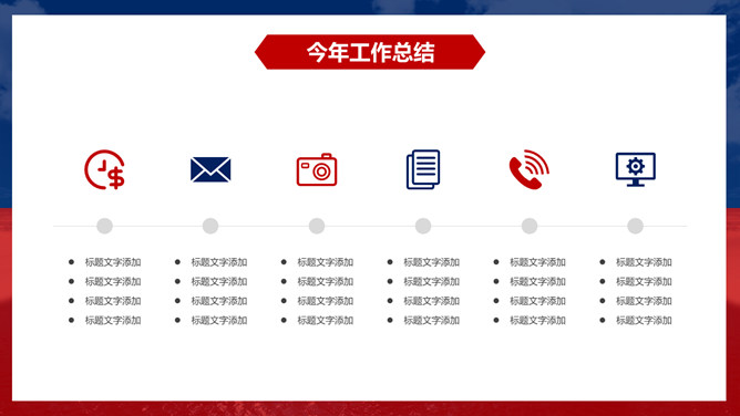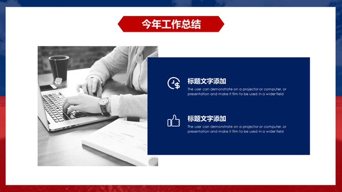 时尚红蓝年终工作总结PPT模板
