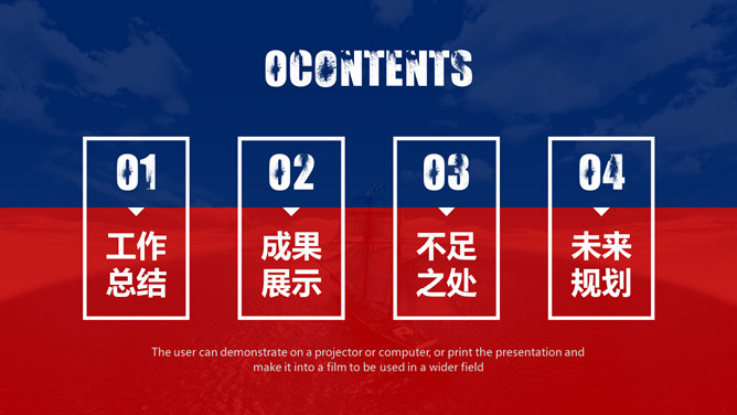 红蓝撞色年终总结计划PPT模板。一套年终工作总结计划幻灯片模板,时尚创意红蓝撞色设计,动态播放效果。