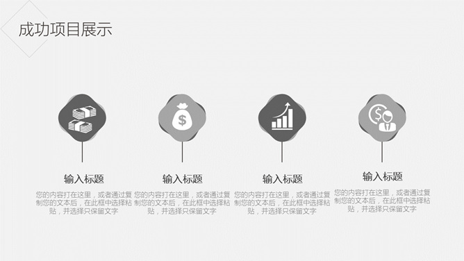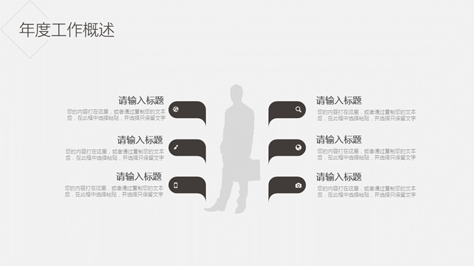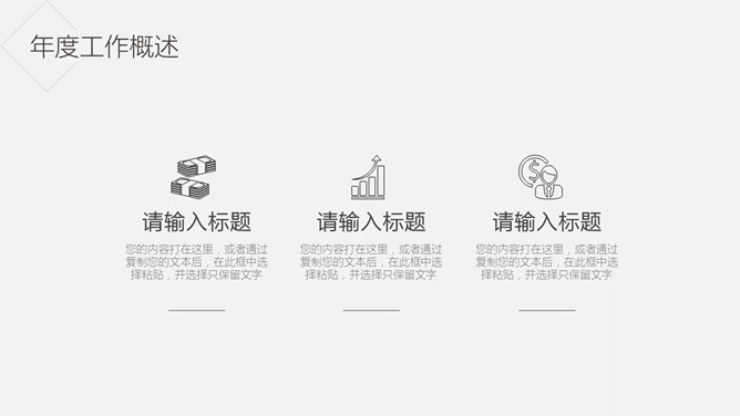 简洁素雅黑灰通用PPT模板。一套简约设计幻灯片模板,黑灰配色,素雅大气,动态播放效果,通用性强。