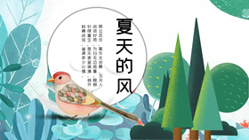 插画风夏天植物小鸟PPT模板