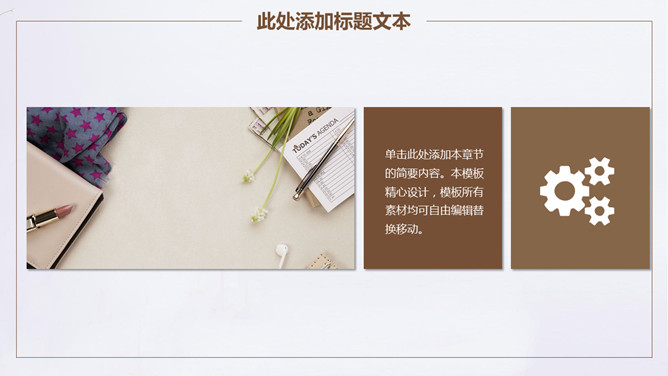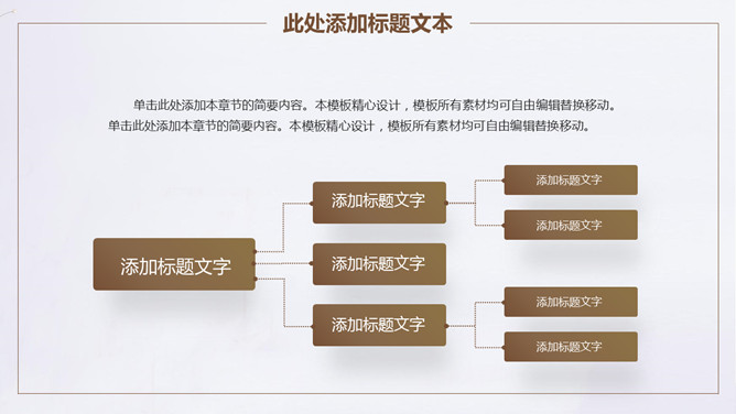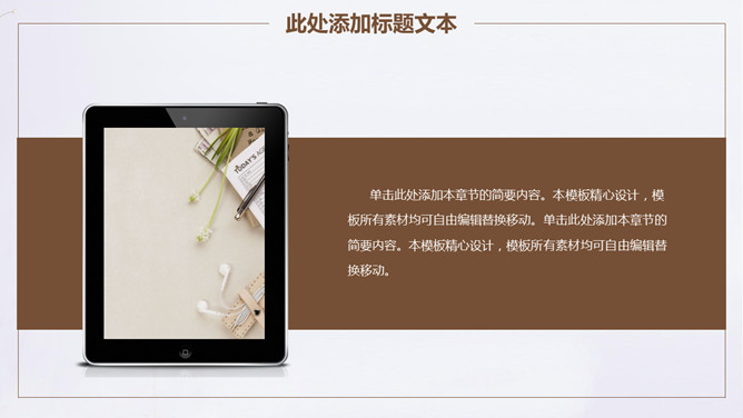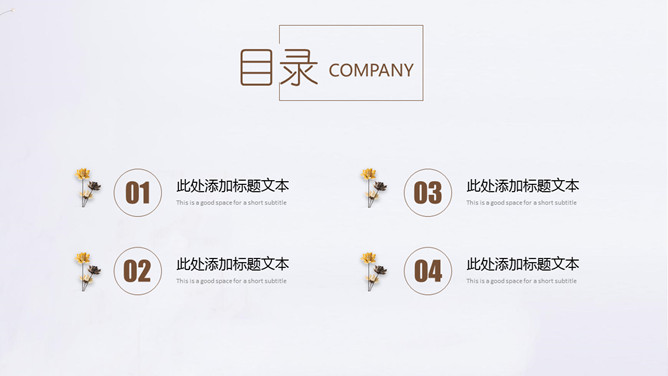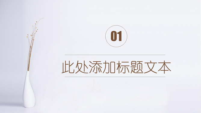 素雅简约通用PPT模板。一套简洁设计幻灯片模板,淡雅素雅设计,棕色主色调,插花花瓶背景,通用性强。