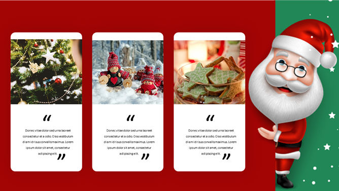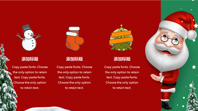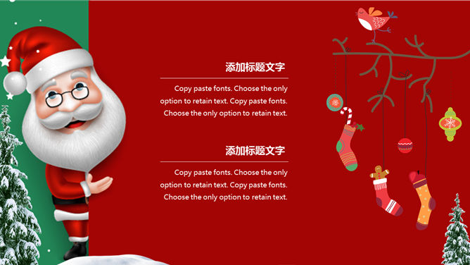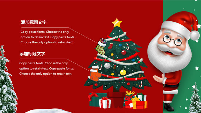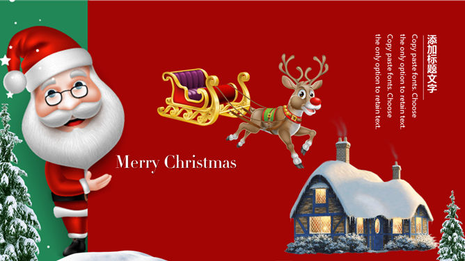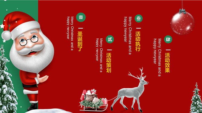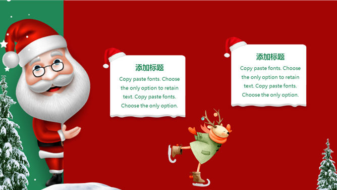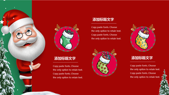 可爱圣诞老人圣诞节PPT模板。一套圣诞节主题幻灯片模板,可爱圣诞老人背景,红绿撞色设计,适合圣诞活动策划。