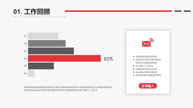黑红大气述职报告PPT模板。一套岗位竞聘述职报告幻灯片模板,大气黑红配色,动态播放,适合年终述职使用。
