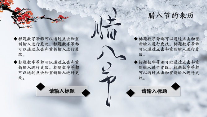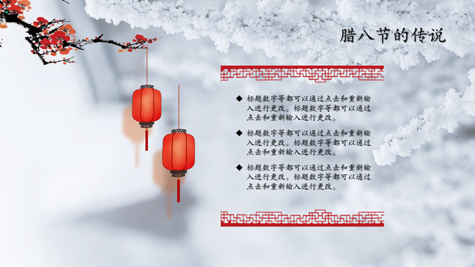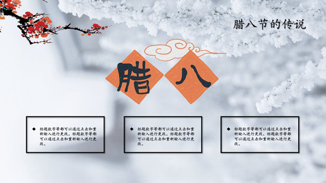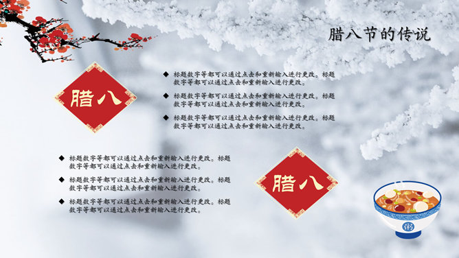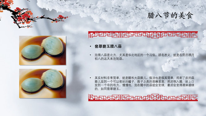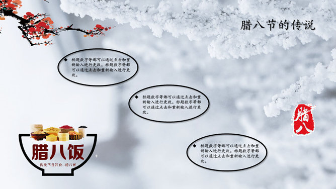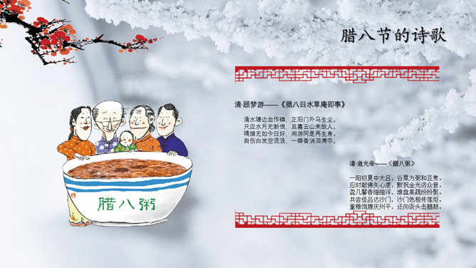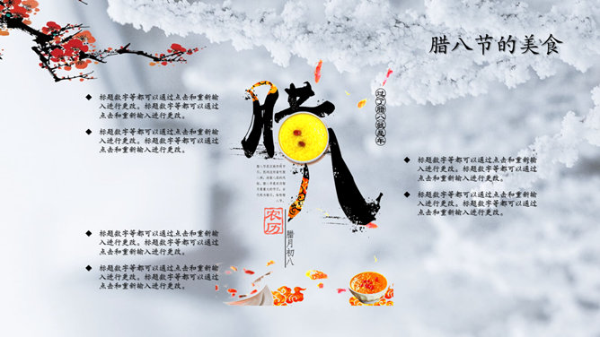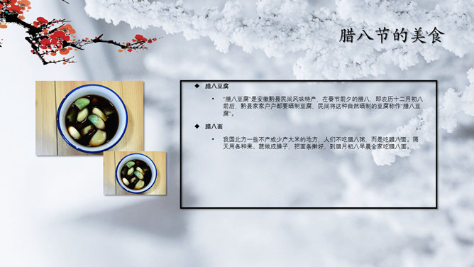 传统节日腊八节介绍PPT模板。俗话说:过了腊八就是年。一套介绍腊八节传统习俗、美食的幻灯片模板。