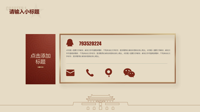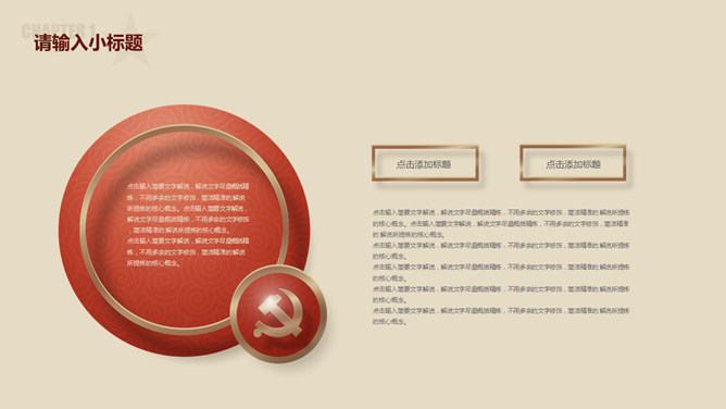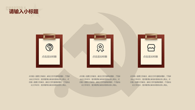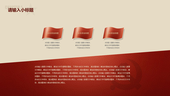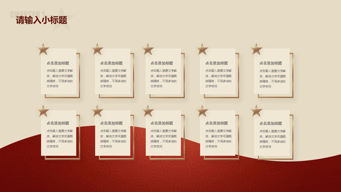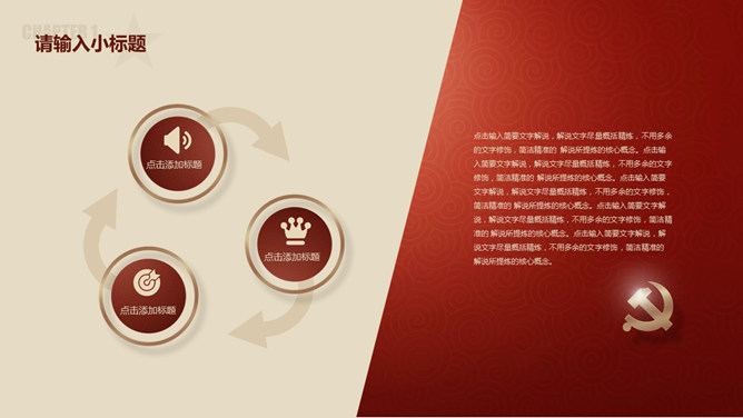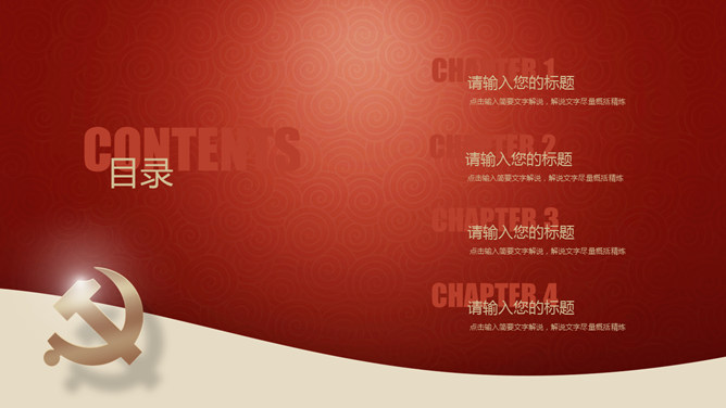 精美党建党政通用PPT模板。一套精美党政通用幻灯片模板,大气暗金暗红配色,适用于党建汇报等用途。