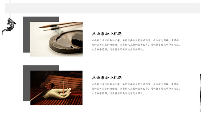 简约素雅水墨中国风PPT模板。一套精美简约中国风幻灯片模板,素雅黑白色调,中国风水墨元素设计。