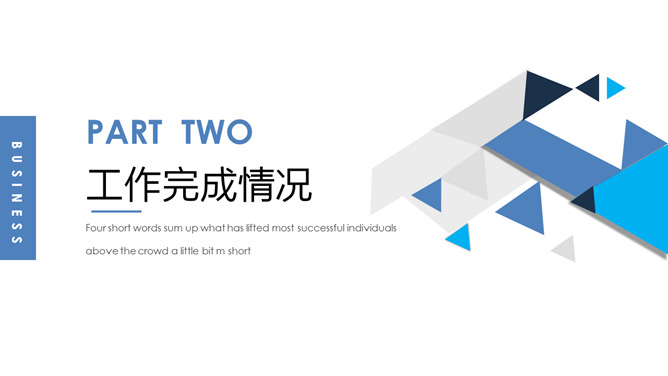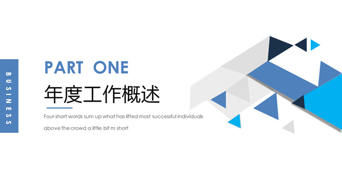 蓝色三角风工作总结PPT模板。一套工作汇报总结计划幻灯片模板,创意蓝色三角风设计,简约大气。