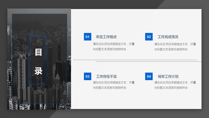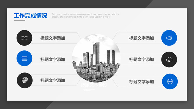 大气蓝黑商务汇报PPT模板。一套商务风幻灯片模板,黑色边框,大气蓝黑配色,适合商务汇报报告等用途。