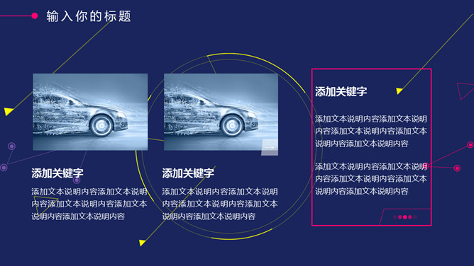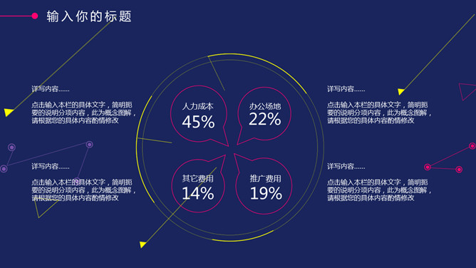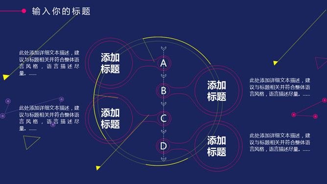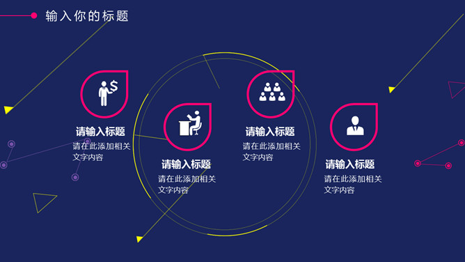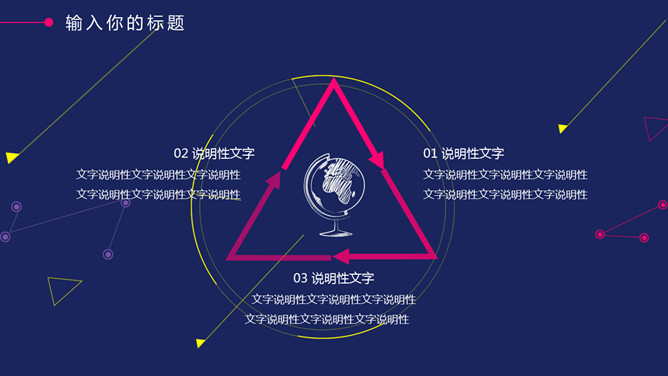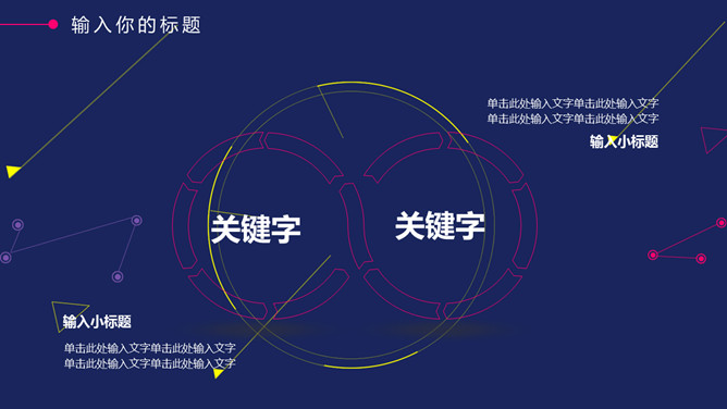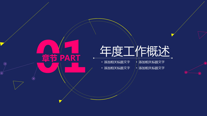 时尚红蓝撞色几何图形PPT模板。一套创意设计幻灯片模板,时尚红蓝撞色配色,多种几何图形装饰。