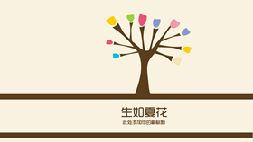 彩色水彩卡通小树PPT模板
