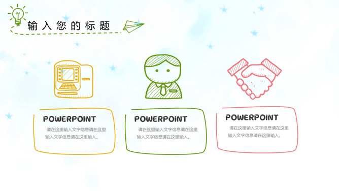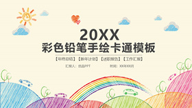 彩色铅笔手绘线条卡通PPT模板
