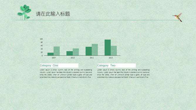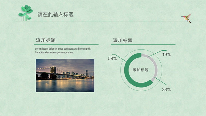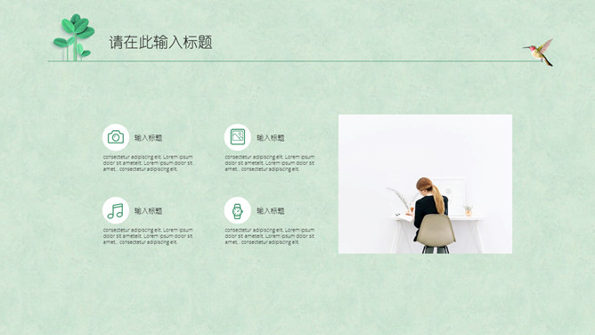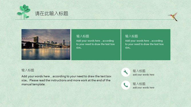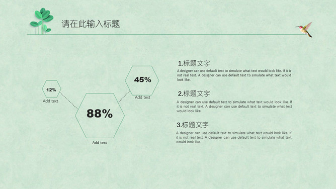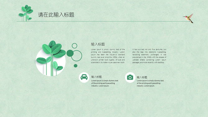 小清新简约小叶子PPT模板。一套简约设计幻灯片模板,小清新绿色主色调,立体效果小叶子装饰,通用性强。