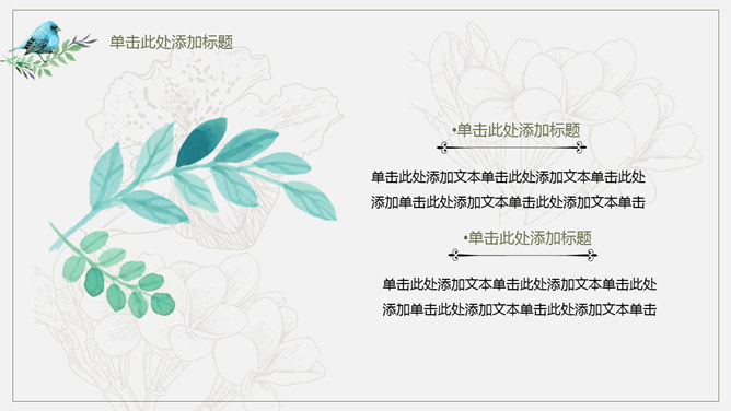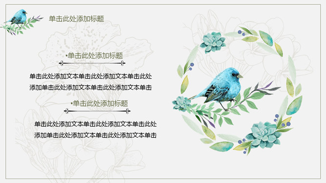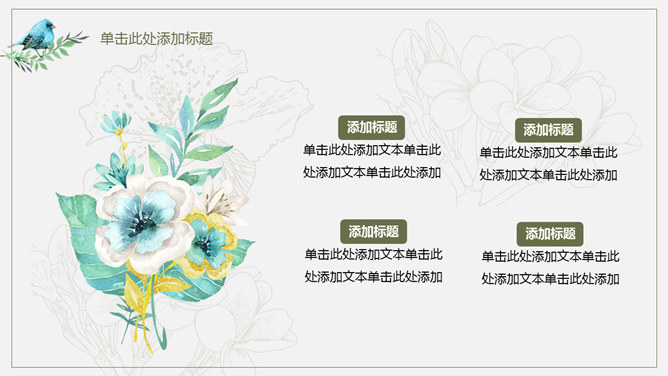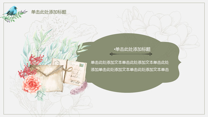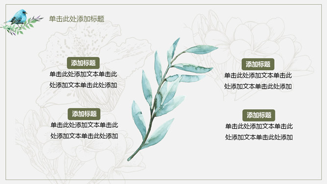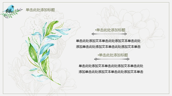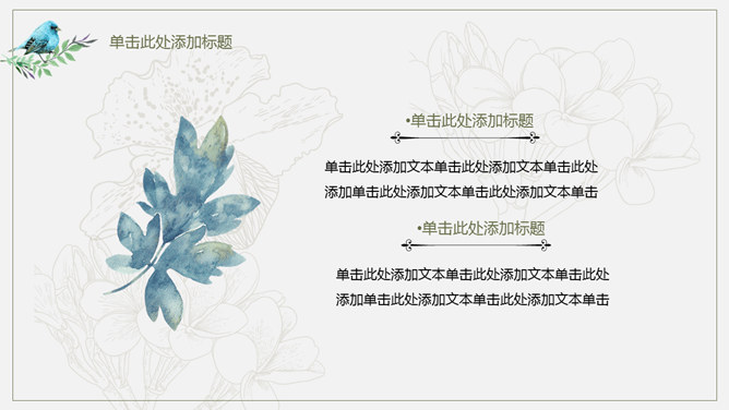 清新复古水彩花朵PPT模板。一套小清新幻灯片模板,复古风格设计,唯美水彩花朵叶子装饰,复古清新。