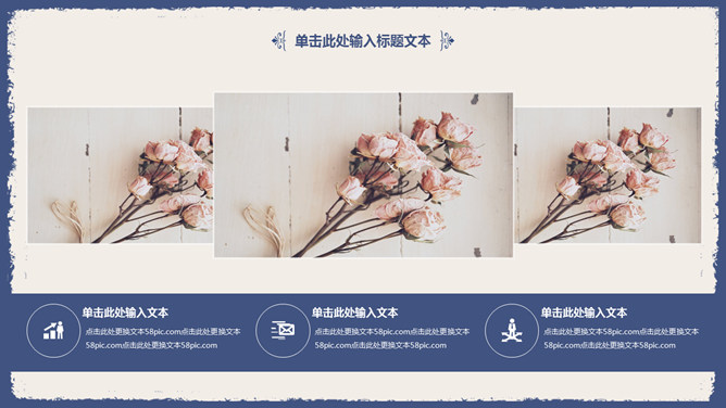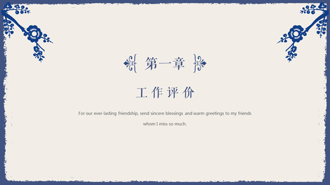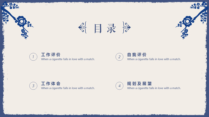 古典雅致简洁蓝花PPT模板。一套简约设计幻灯片模板,古典雅致蓝花装饰,动态播放效果,通用性强。
