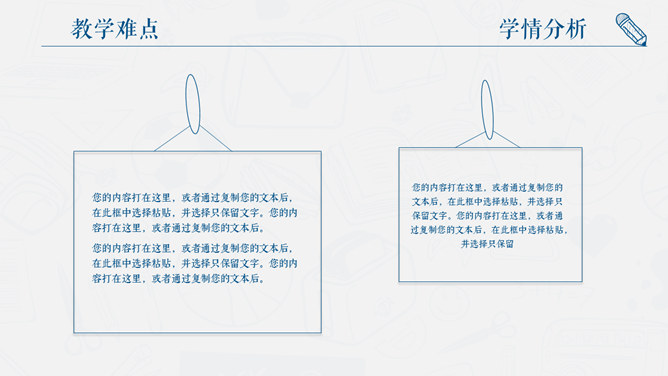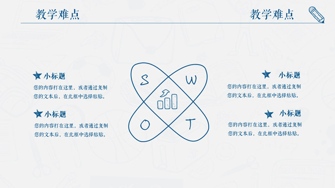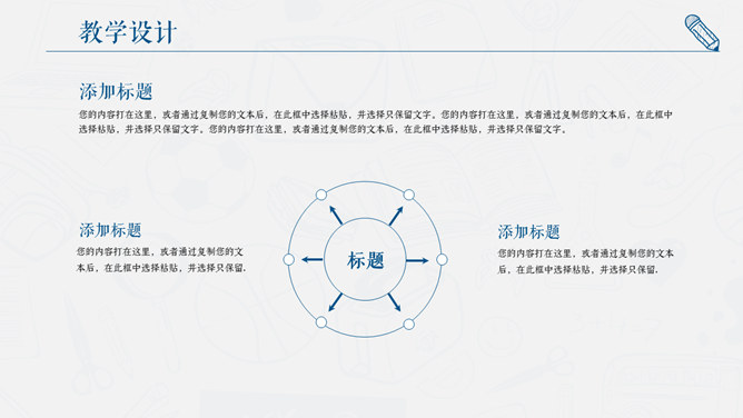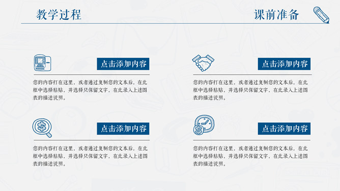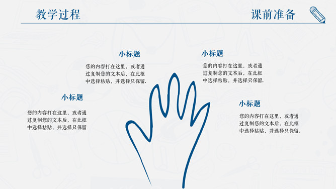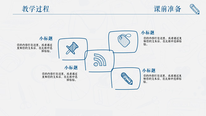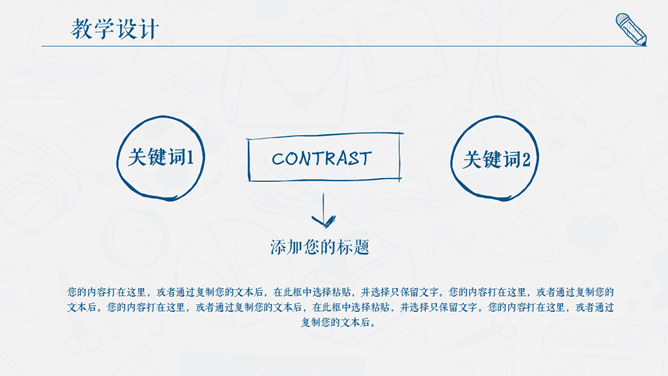 创意手绘教师说课PPT模板。一套教师教育教学说课幻灯片模板,蓝色主色调,创意手绘设计风格,页面丰富实用。