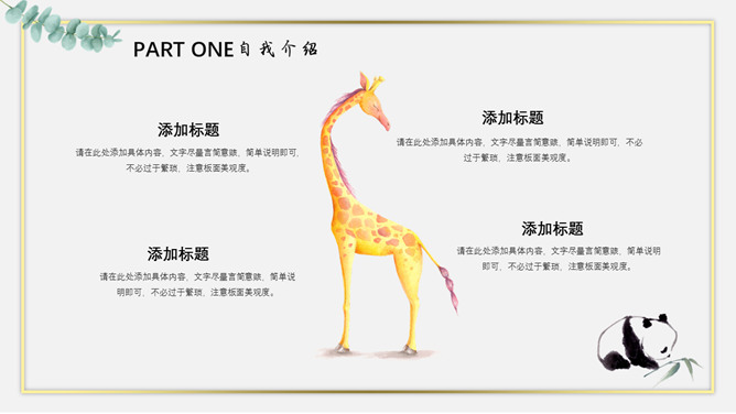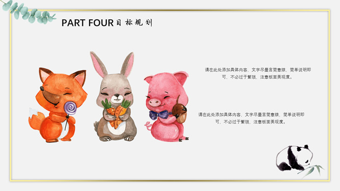 清新水彩卡通动物PPT模板