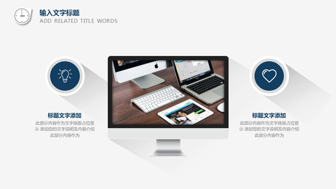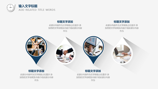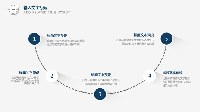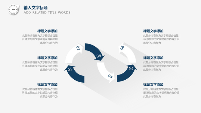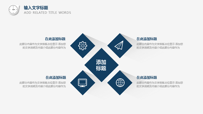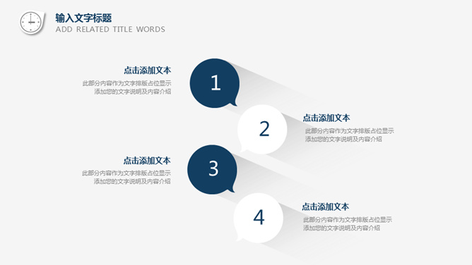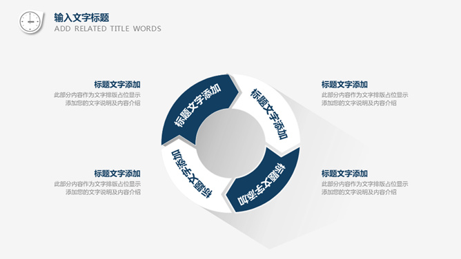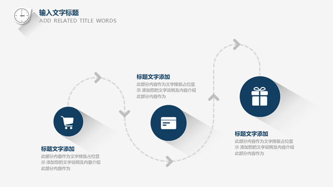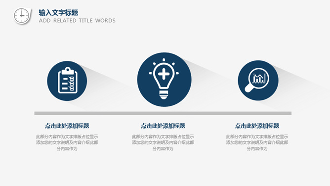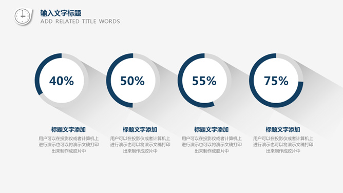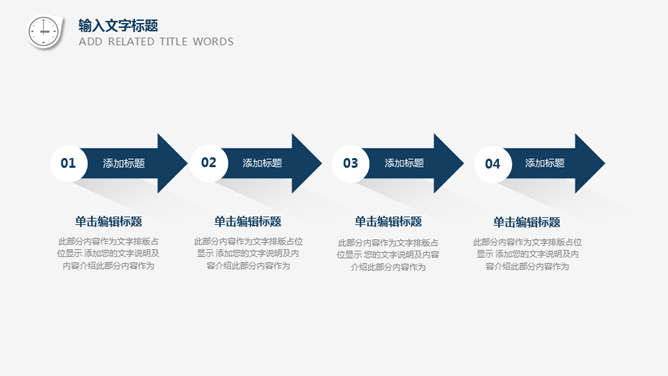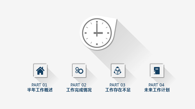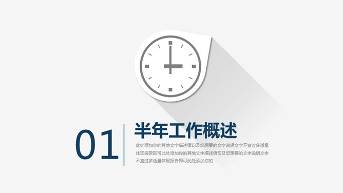 极简长阴影工作总结PPT模板。一套工作总结汇报幻灯片模板,大气蓝灰主色调,创意长阴影设计,极简风格。