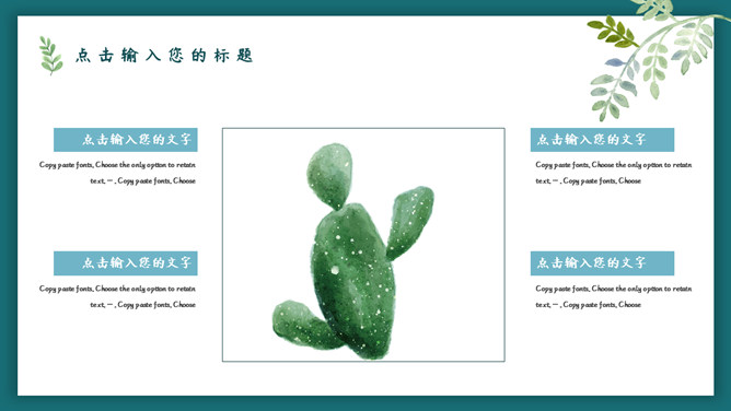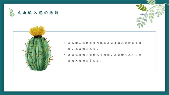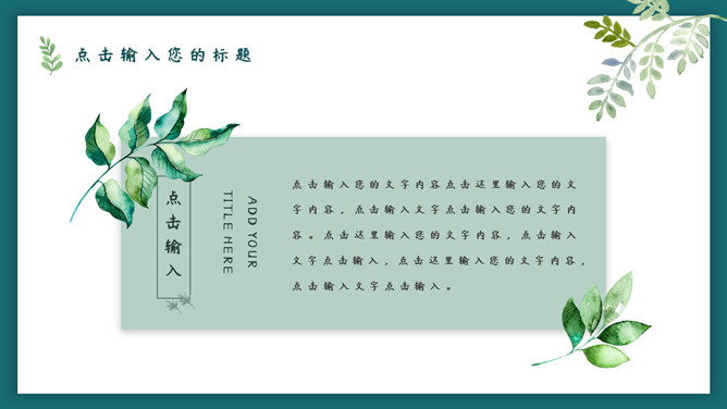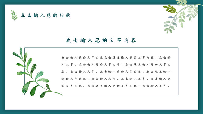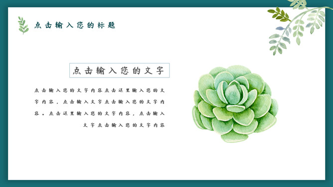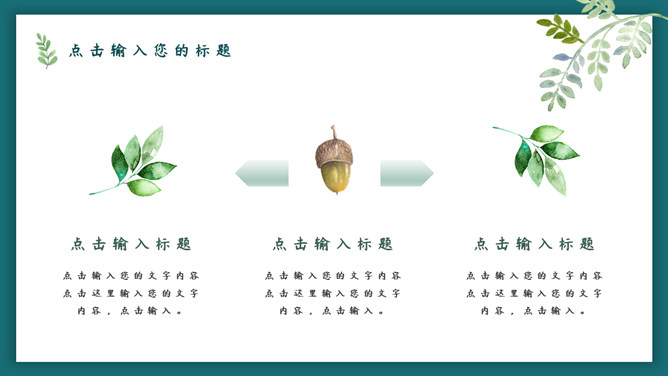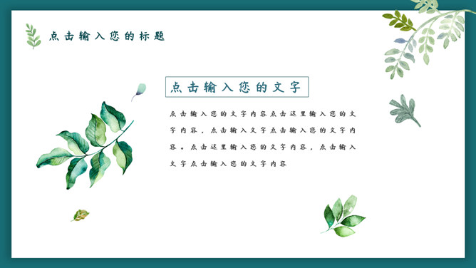 插画风唯美文艺森系PPT模板。一套小清新幻灯片模板,唯美文艺森系插画设计风格,水彩绿色植物装饰。