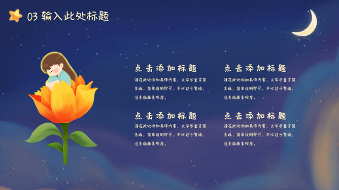 唯美插画风卡通PPT模板。一套精美卡通幻灯片模板,唯美绘本插画设计风格,动态播放效果。