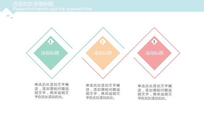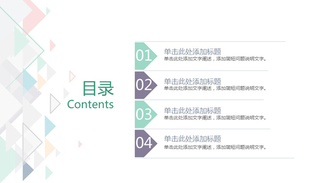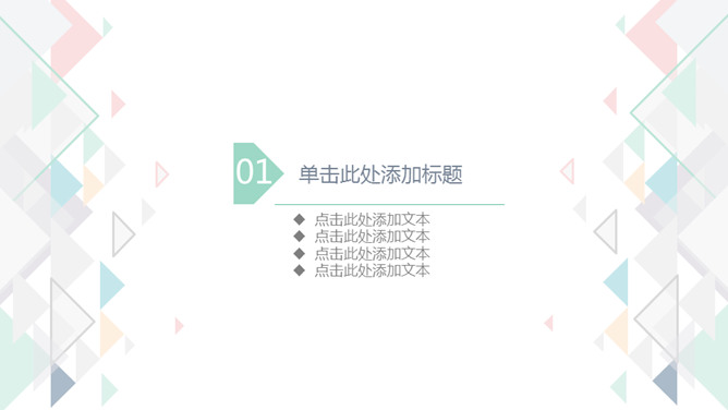 简约清新淡雅三角风PPT模板。一套简约设计幻灯片模板,淡雅清新多彩配色,小三角装饰,动态播放效果。