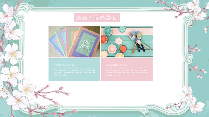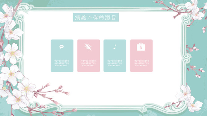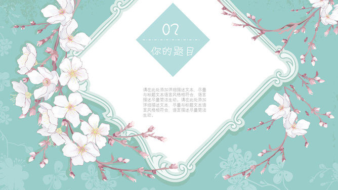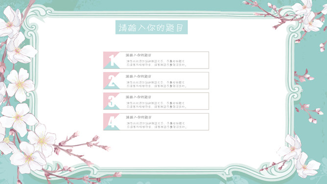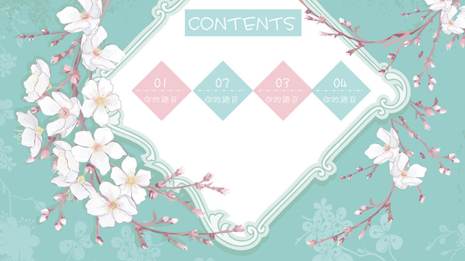 淡雅清新唯美花朵PPT模板。一套清新淡雅幻灯片模板,清新蓝粉配色,唯美花朵花卉背景,动态播放效果。