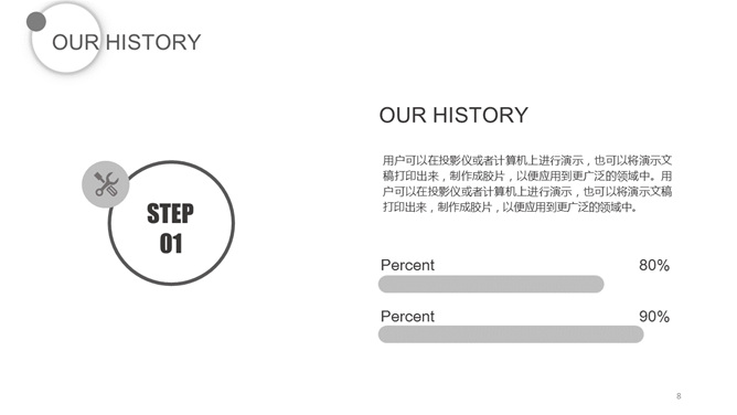 极简灰白配色通用PPT模板。一套极简设计幻灯片模板,纯白背景,灰色主色调,素雅大方,通用性强。