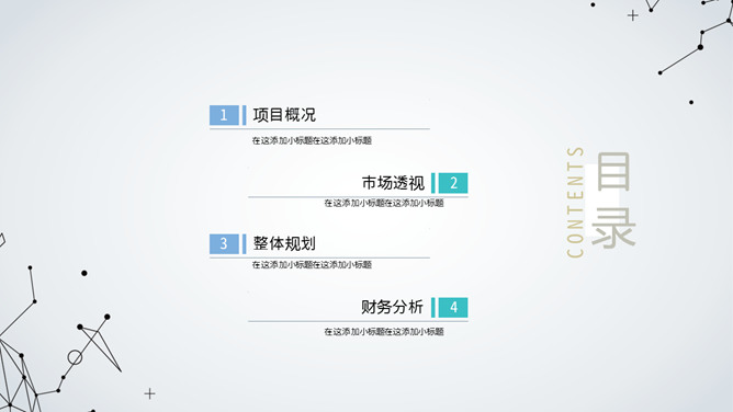 极简点线商业计划书PPT模板。一套商务商业创业计划书幻灯片模板,简约渐变灰色背景,点线粒子装饰,极简设计。