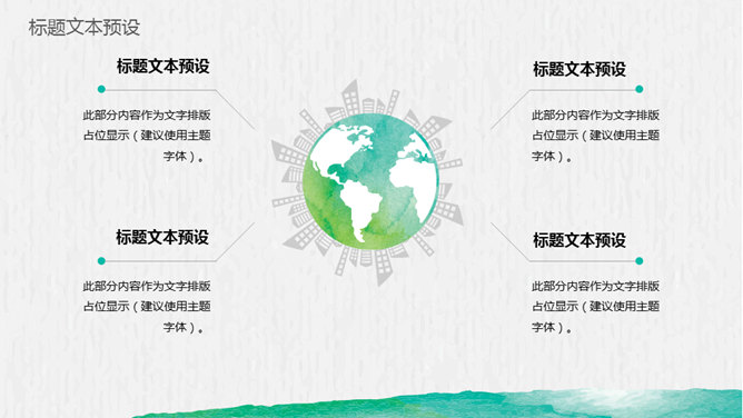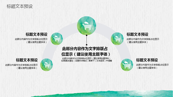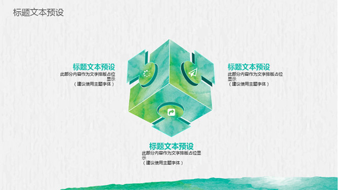 创意文艺晕染水彩PPT模板。一套创意设计幻灯片模板,绿色晕染水彩效果设计,文艺叶子装饰,动态播放。