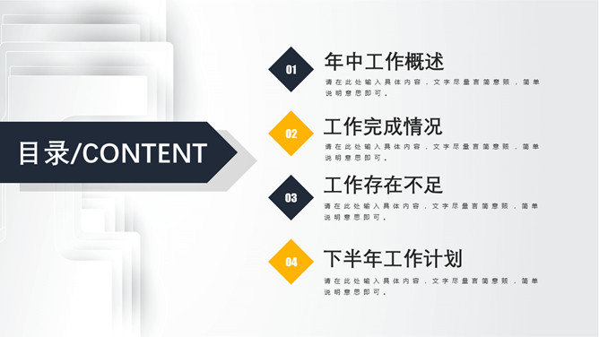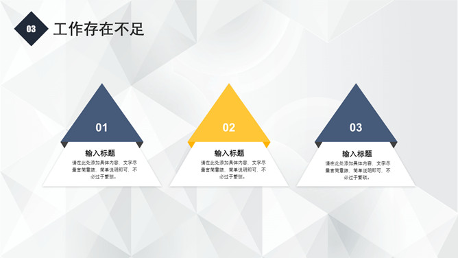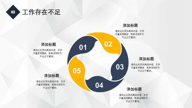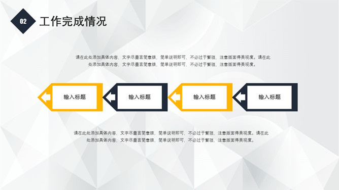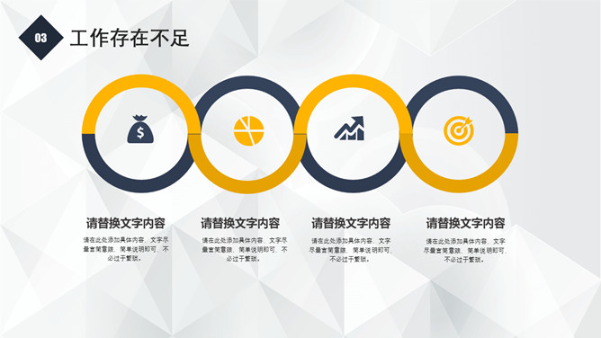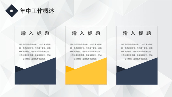 简洁通用工作报告PPT模板。一套工作汇报总结报告幻灯片模板,立体效果背景,醒目蓝黄配色,简约大气通用。